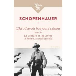Vous avez tort mais refusez de l'admettre ? Avec humour et perspicacité, ce petit précis recense et analyse les stratagèmes et les ruses pour sortir vainqueur de tout débat, dispute ou joute verbale. Schopenhauer se livre à une savoureuse réflexion sur le langage et la dialectique, pour le plus grand plaisir des amoureux de la contradiction. Ces conseils, aussi précieux que sarcastiques, sont suivis de deux essais incisifs sur la pensée et la lecture : les livres nourrissent-ils notre réflexion, ou nous empêchent-ils de penser par nous-mêmes ?