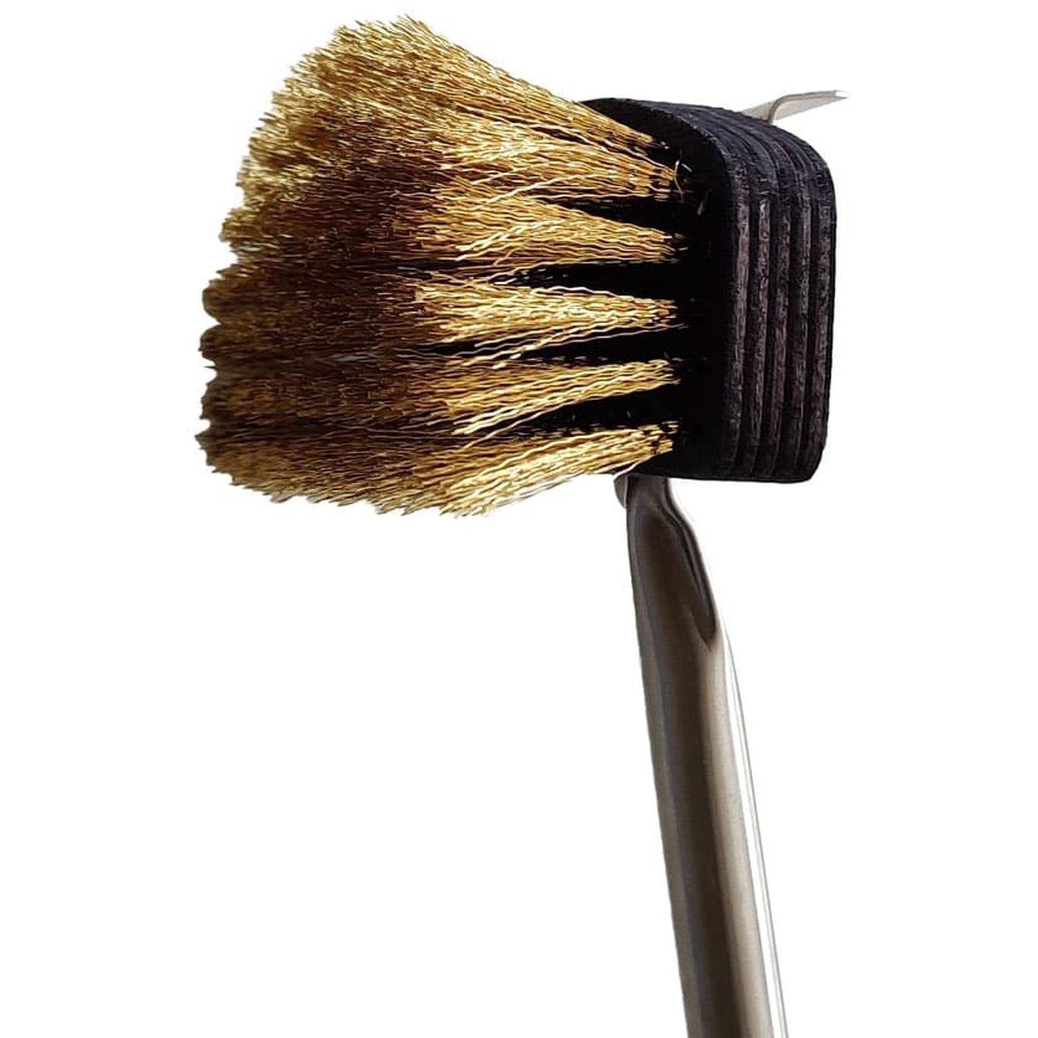 Brosse en laiton pour four à pizza avec grattoir en inox. Indispensable pour balayer et nettoyer la pierre réfractaire.