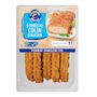 COLIN d'Alaska (Theragra chalcogramma) 57%, chapelure (farine de BLE, levure, sel, épices), huile de tournesol, eau, CREME (dont stabilisant: carraghénanes), riz, farine de BLE, semoule de BLE, GLUTEN de BLE, fumet de POISSON (maltodextrine, fécule de pomme de terre, POISSON déshydraté, extrait de POISSON, amidon, oignon, huile de tournesol, ail, gélifiant: farine de guar, épices), épaississant: méthylcellulose, sel, poivre. Traces éventuelles de crustacés, mollusques, oeuf et soja.