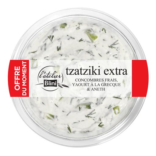 Yaourt a la grecque 37% (LAIT de vache, creme, proteines de LAIT, ferments LACTIQUES) - concombres 30% - fromage frais a 0% de matiere grasse (contient LAIT) - huile de colza - aneth 1,4% - sel - vinaigre d'alcool blanc - menthe 0,6% - ail - poivre en poudre - conservateur : E202 - epaississant : E415.