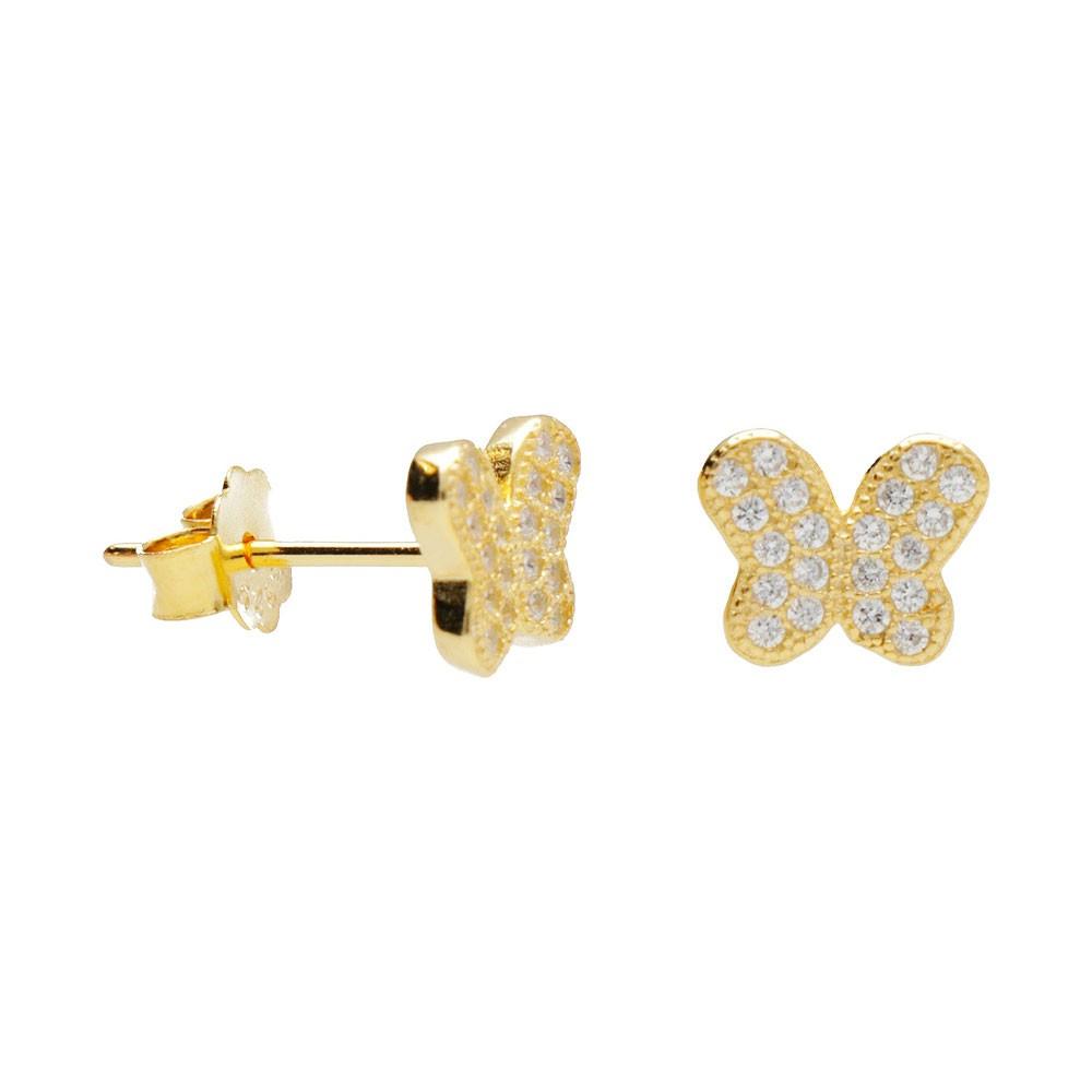 Boucles d'Oreilles Argent 925/000 Doré - Papillon Pavé de Zirconiums