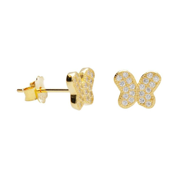 ⭐, Boucles d'Oreilles Argent 925/000 Doré ⭐, Motif Papillon Pavé de Zirconiums⭐, Dimensions : 0.80cm*0.60cm - Poids Indicatif 1.20gr⭐, Bijou livré dans un écrin et accompagné d'un certificat d'authenticité