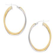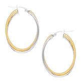Boucles d'Oreilles Créoles 2 Ors Or Bicolore Jaune et Blanc