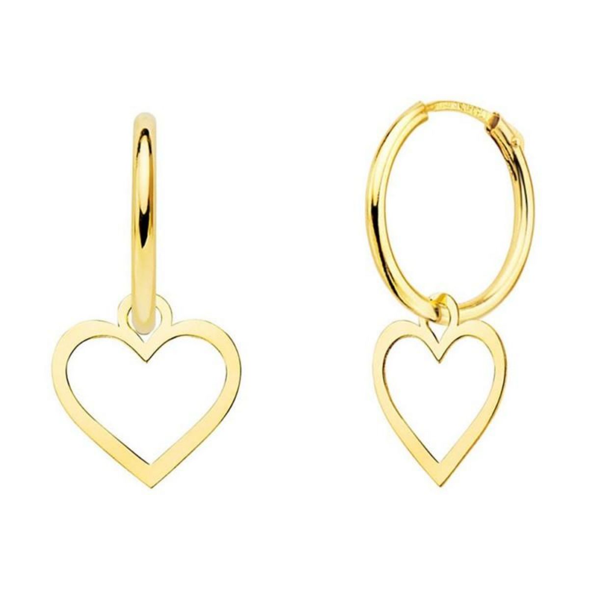Boucles d'Oreilles Créoles Or 18 Carats 750/000 Jaune - Charms Coeurs Pendants