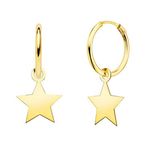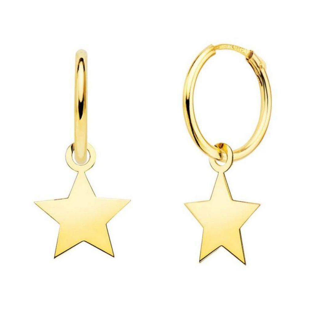 Boucles d'Oreilles Créoles Or 18 Carats 750/000 Jaune - Charms Etoiles Pendantes