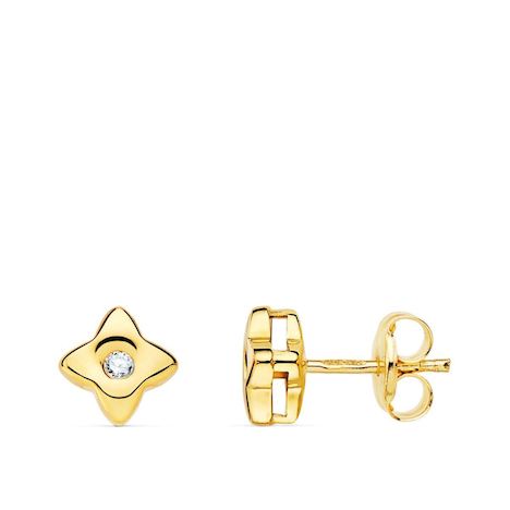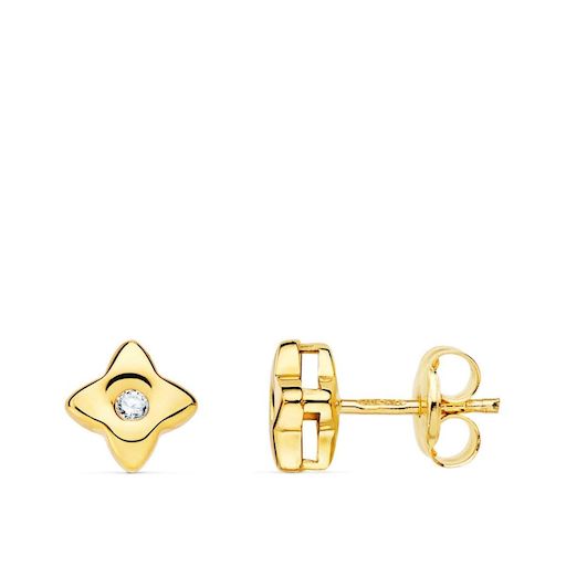 Boucles d'Oreilles Etoiles Solitaires Diamants de Synthèse 0.04 Carats - Or 18 Carats 750 Jaune