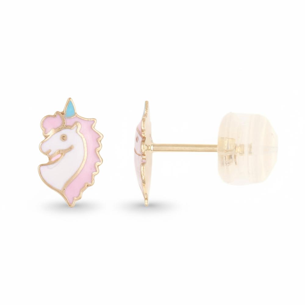 Boucles d'Oreilles Licornes Laquées - Or Jaune - Enfant