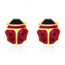 Boucles d'Oreilles Or 18 Carats 750/000 Jaune - Coccinelles - Enfant