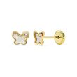Boucles d'Oreilles Or 18 Carats 750/000 Jaune et Nacre - Papillons