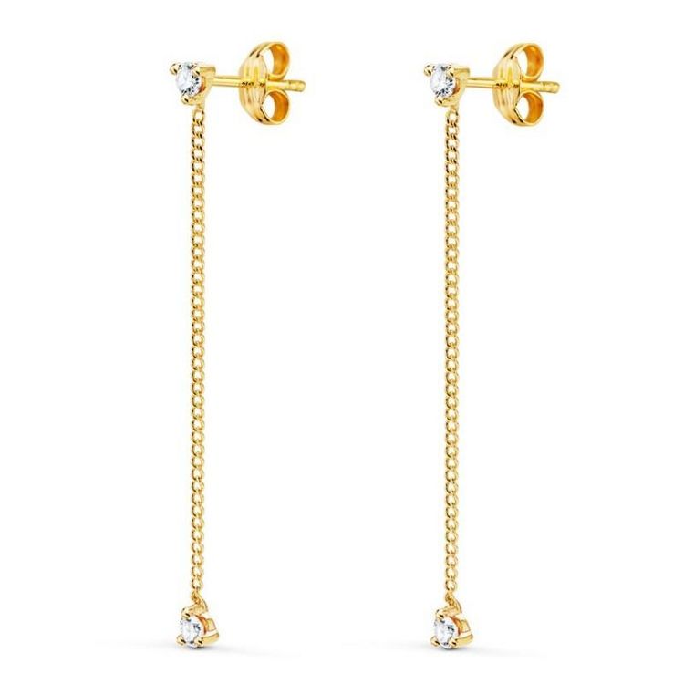 Boucles d'Oreilles Or 18 Carats 750/000 Jaune et Zirconiums - Pendantes