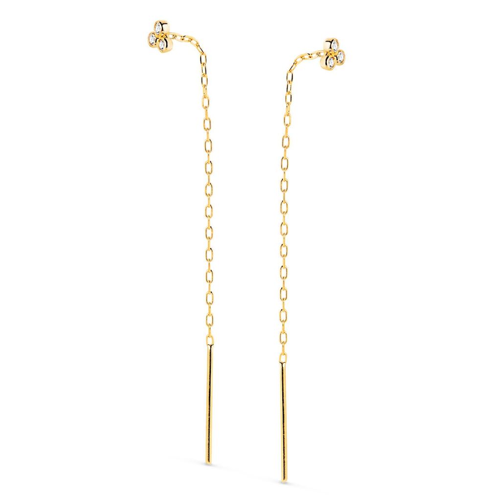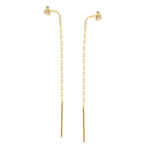 ⭐, Boucles d'oreilles Or 18 Carats 750/000 Jaune ⭐, Zirconiums avec chaîne pendante ⭐, Dimension : Chaîne 56 mm, zirconiums 3x3 mm, Poids indicatif : 0,50 g ⭐, Le bijou est livré dans un écrin élégant, prêt à être offert ou à être ajouté à votre collection personnelle. Un