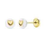 Boucles d'Oreilles Or 18 Carats 750/000 Jaune - Perles de Culture et Coeur