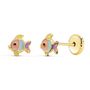 ⭐, Or 18 Carats 750/000 Jaune - Email Coloré⭐, Boucles d'Oreilles - Puces - Motif Petits Poissons⭐, Modèle Enfant - Fille - Fillette - Fermoir à vis⭐, Dimensions Papillons 5mm*5mm - Poids Indicatif : 0.35gr⭐, Bijou livré dans un écrin et accompagné d'un certificat