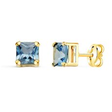 ⭐, Boucles d'Oreilles Puces - Femme⭐, Or 18 Carats 750/000 Jaune ⭐, Zirconiums Carrés 5 mm couleur Topaze Bleue⭐, Poids indicatif : 0.80gr⭐, Bijou livré dans un écrin et accompagné d'un certificat d'authenticité