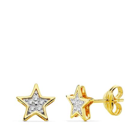 Boucles d'Oreilles Or 18 Carats 750 Etoiles - Zirconium