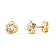 Boucles d'Oreilles Or 18 Carats 750 Jaune et Zicroniums - Motif Noeud