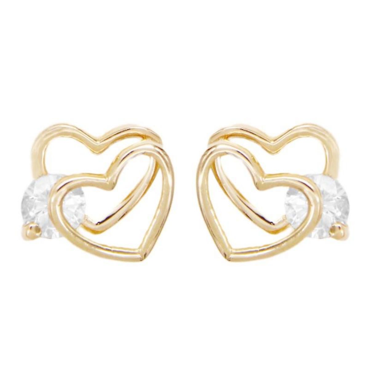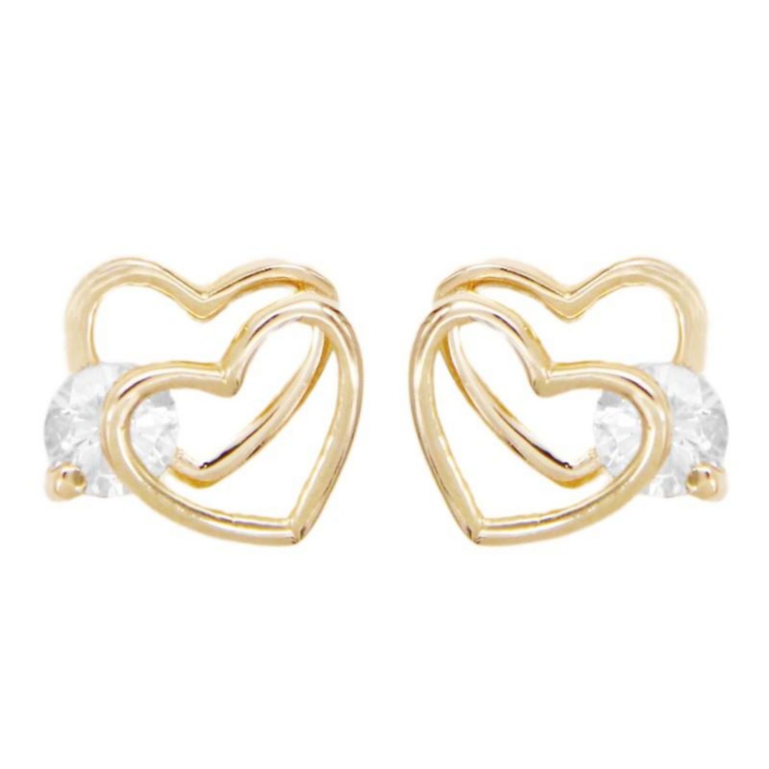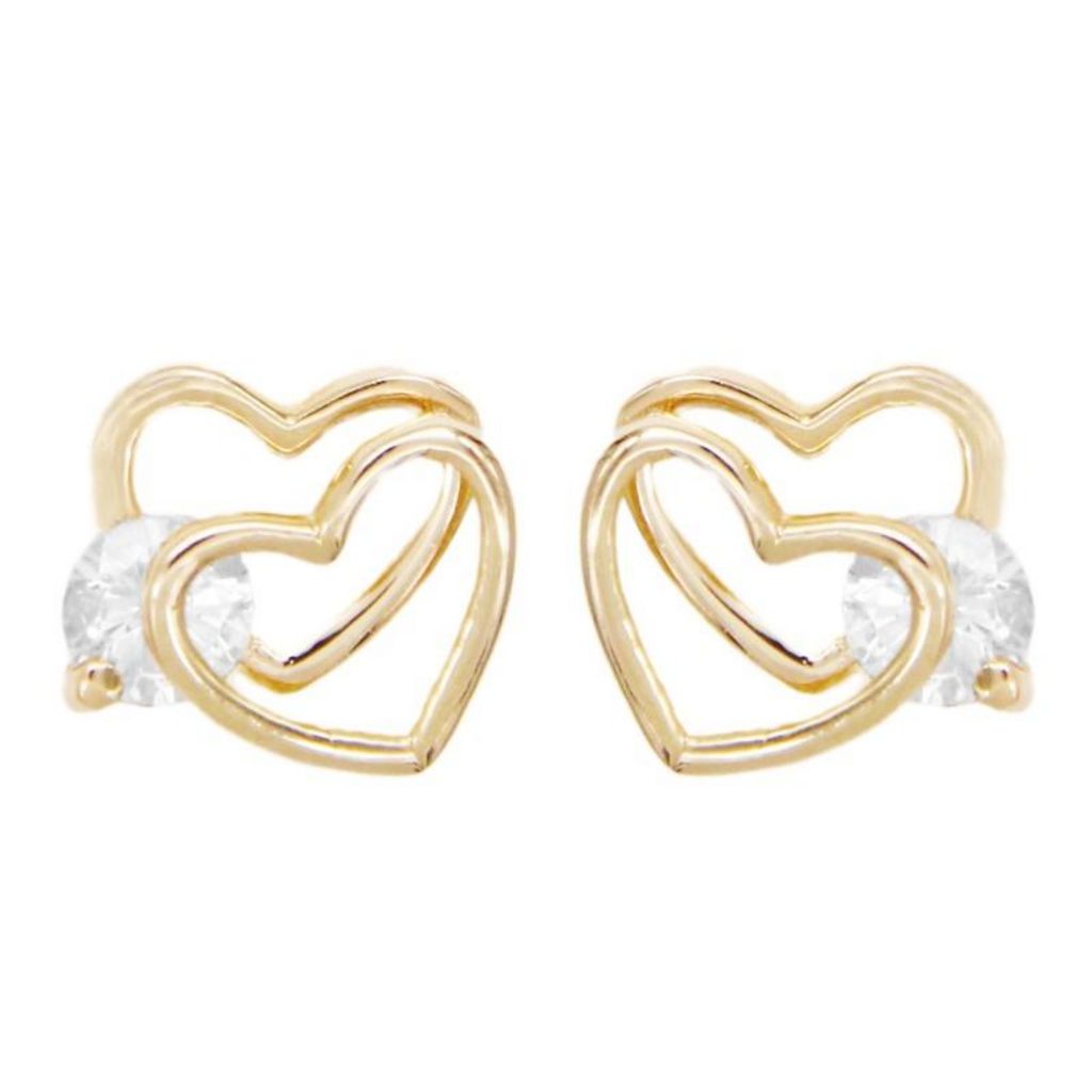 ⭐, Boucles d'Oreilles Puces Or Jaune Coeurs Doubles Sertis de Zirconiums - Femme