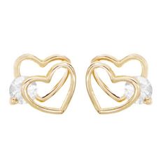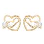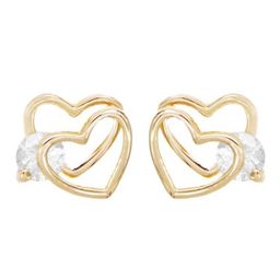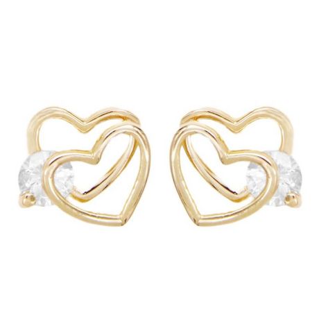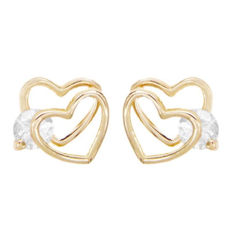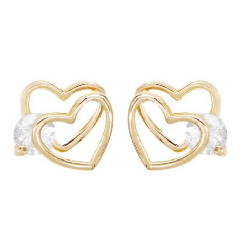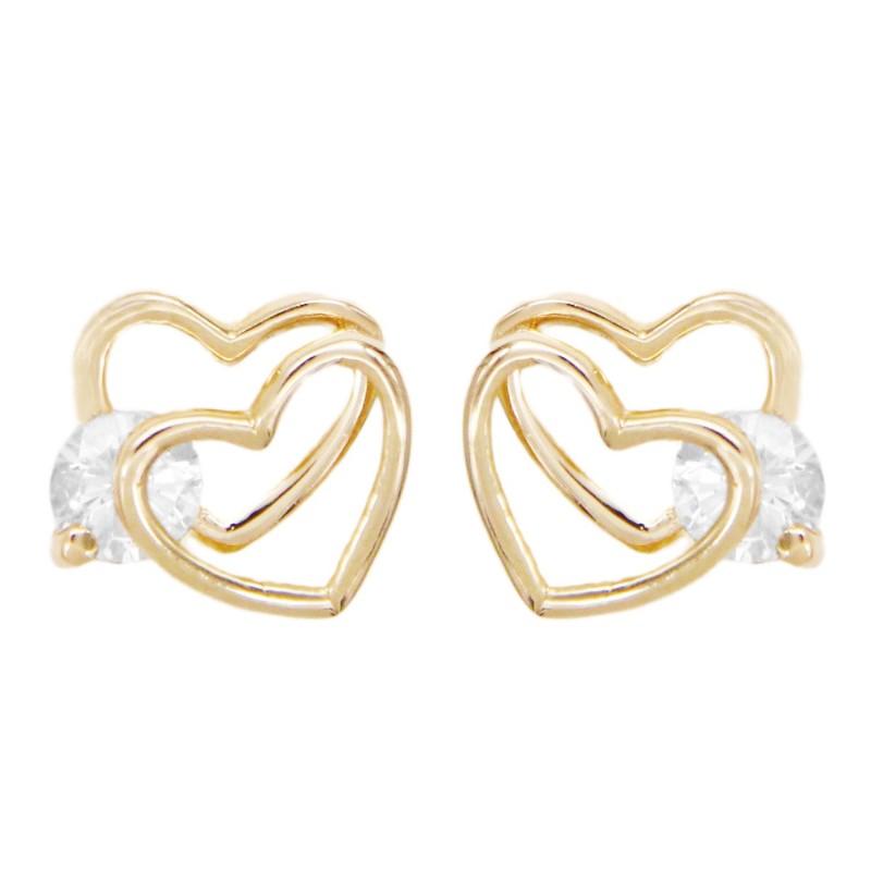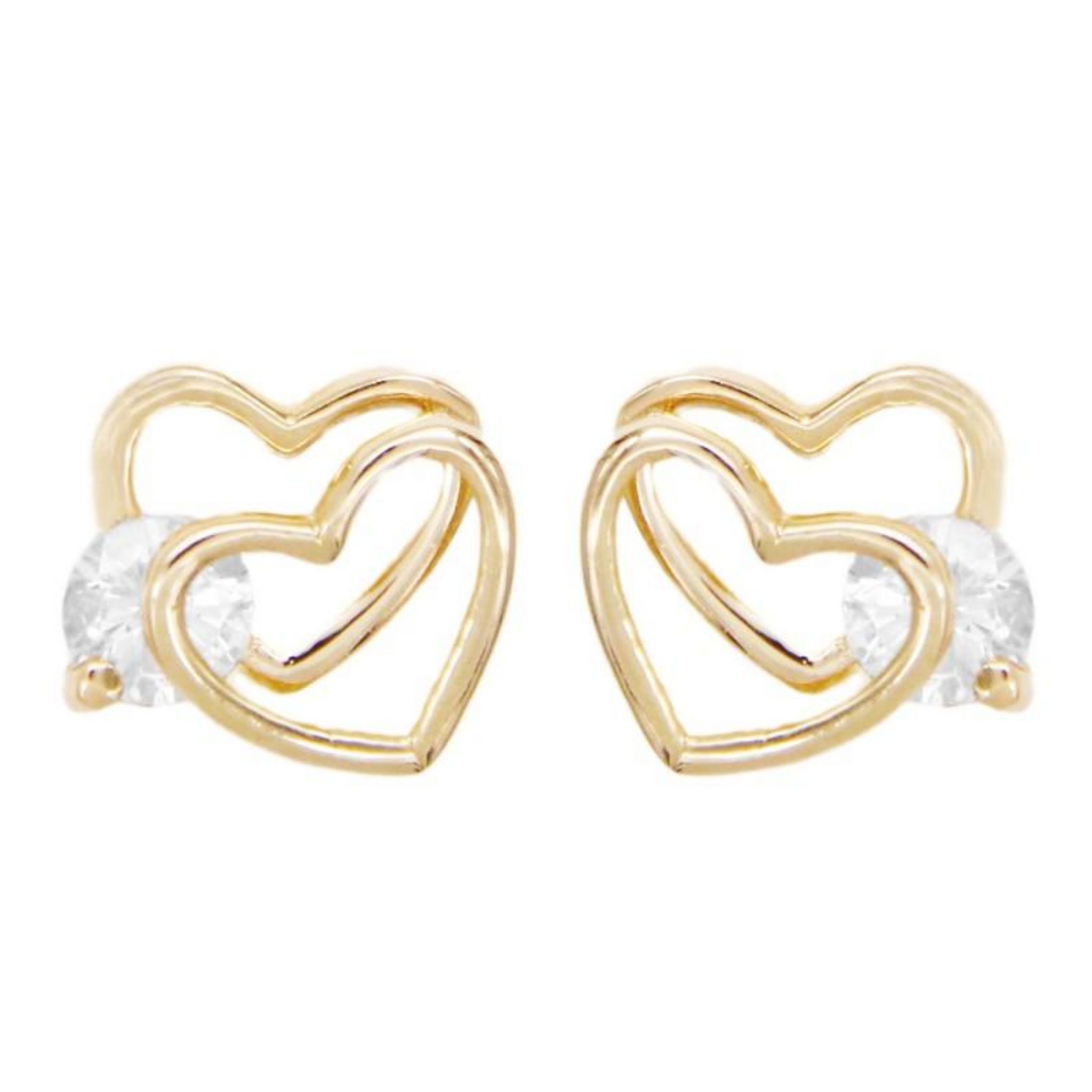 ⭐, Boucles d'Oreilles Puces Or Jaune Coeurs Doubles Sertis de Zirconiums - Femme