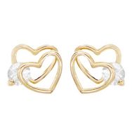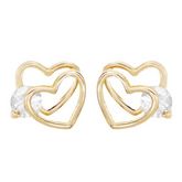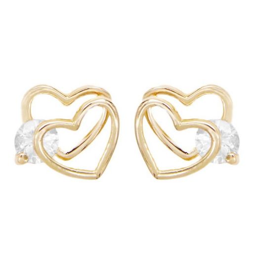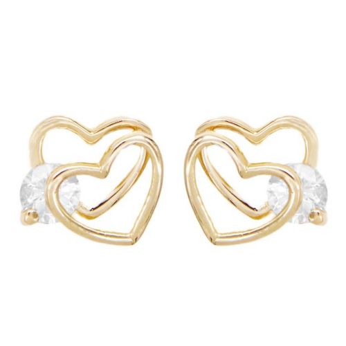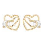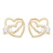 Boucles d'Oreilles Or Jaune Coeurs Doubles Sertis de Zirconiums