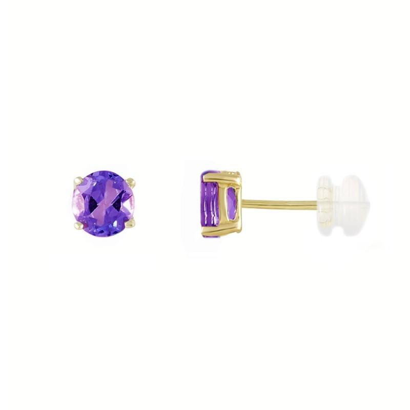 Boucles d'oreilles Puces - FemmeOr Jaune 375/000Améthystes Rondes 4mm - Poids indicatif : 0.45grBijou livré dans un écrin et accompagné d'un certificat d'authenticitéFermoirs confort et hypoallergéniques - Poussettes Silicone