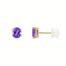 Boucles d'Oreilles Or Jaune et Améthyste Ronde