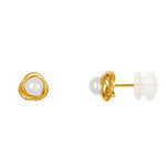 Boucles d'Oreilles Or Jaune et Perle - Motif Noeud