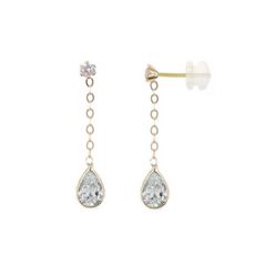 Boucles Or Jaune Pendantes - Femme ou Enfant - FilleOr Jaune 375/000Hauteur: 2cm - Zirconium forme goutte 6mm - Monture sertie d'un ZirconiumPoids Indicatif : 0.30grBijou livré dans un écrin et accompagné d'un certificat d'authenticité
