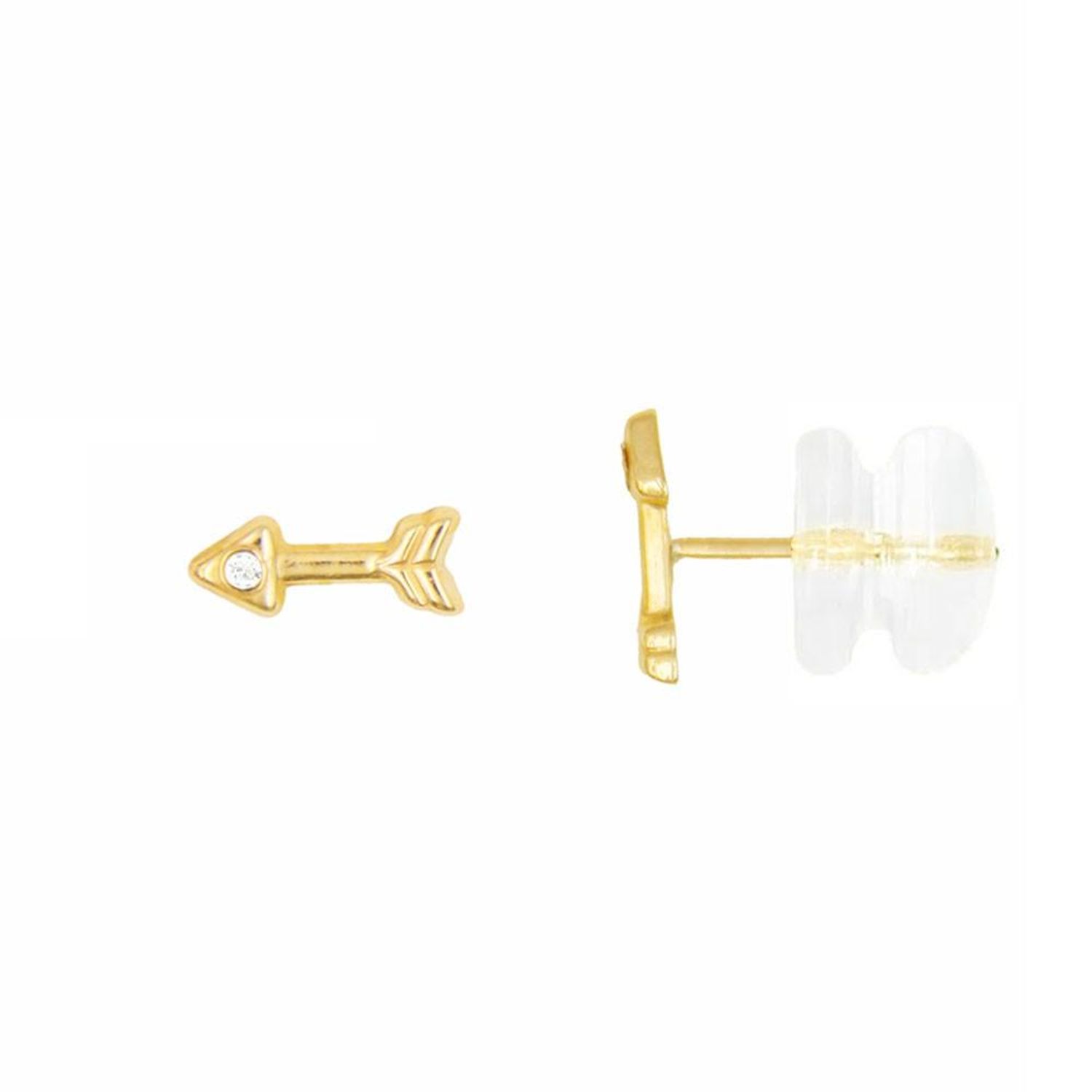 ⭐, Boucles d'Oreilles Flèches Serties de Zirconiums⭐, Or 375/000⭐, Dimensions 9mm * 3.5mm - Poids Indicatif : 0.25gr - Modèle Femme ou Enfant⭐, Fermoirs confort et hypoallergéniques - Poussettes Silicone⭐, Bijou livré dans un écrin et accompagné d'un certificat d'a