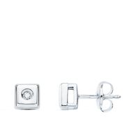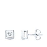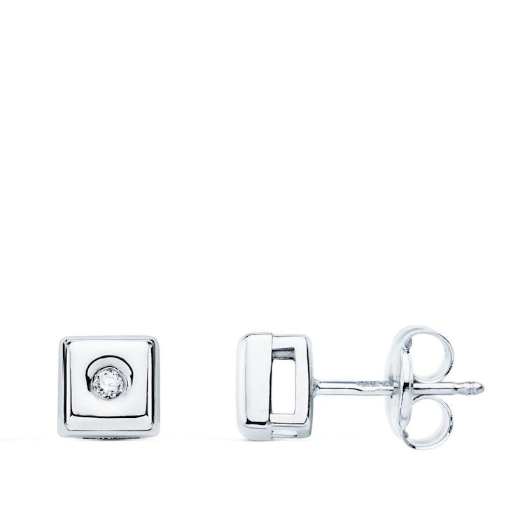 ⭐, Boucles d'Oreilles Puces Diamants Solitaires - Carrées⭐, Or 18 Carats 750/000 Blanc ⭐, 2 Diamants de Synthèse* de 1.7mm de Diamètre et de 0.04 Carats au total - Qualité Supérieure GVS2⭐, Dimension 5.5mm - Poids Indicatif 0.95gr - Poids définitif connu après chaque fabr