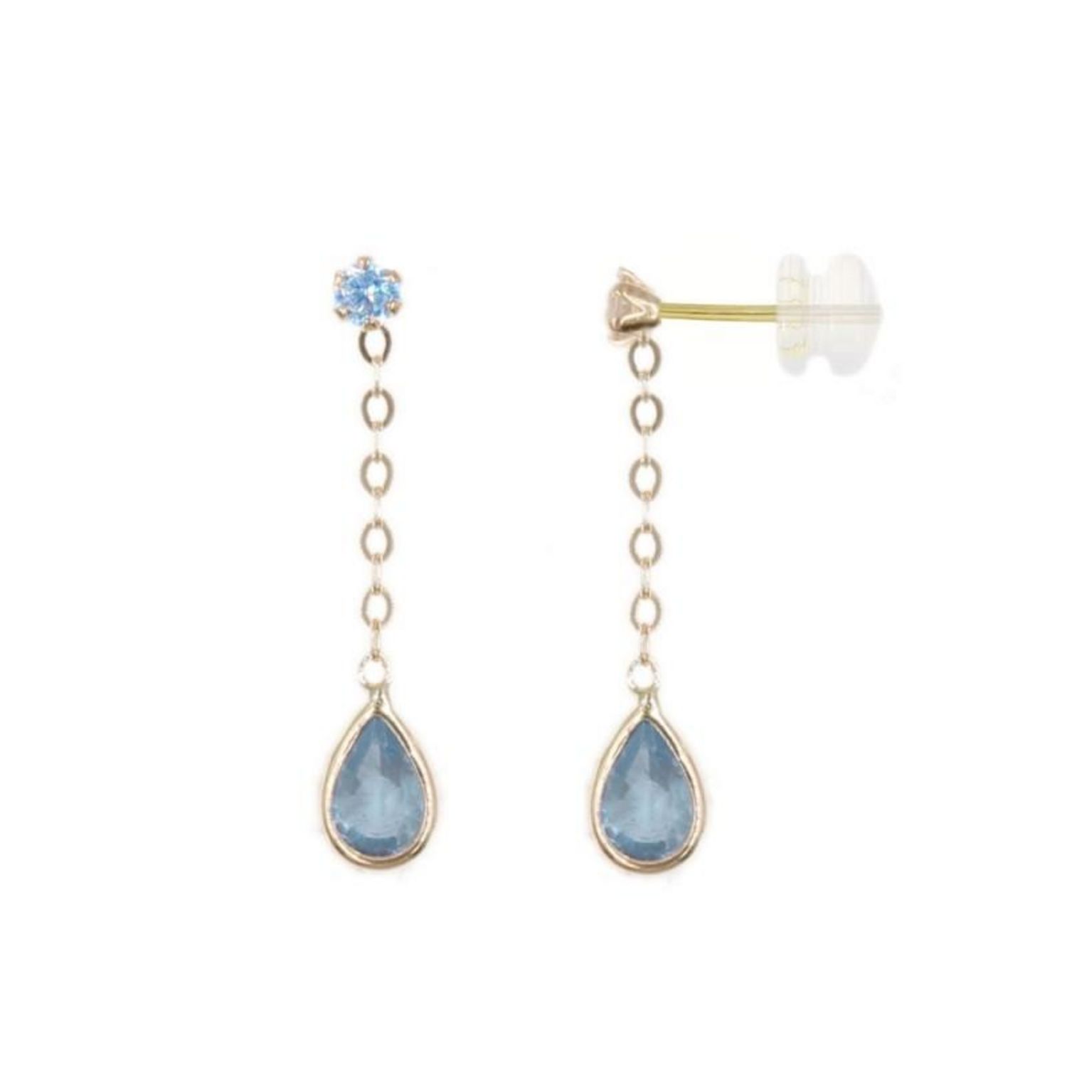 Boucles d'Oreilles Topaze Bleue Or Jaune - Pendantes - Femme ou Enfant
