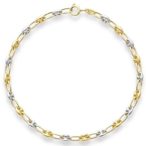 Bracelet 2 Ors - Or Bicolore - Maille Grain de Café Jaune et Blanc - Femme