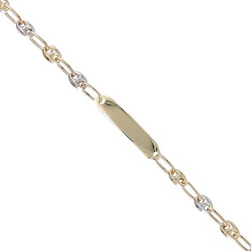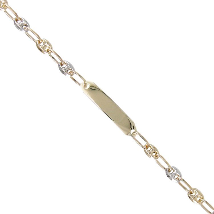 Bracelet Enfant Or Bicolore - Jaune et Blanc - Gourmette - Maille Grain de Café - Gravure Offerte