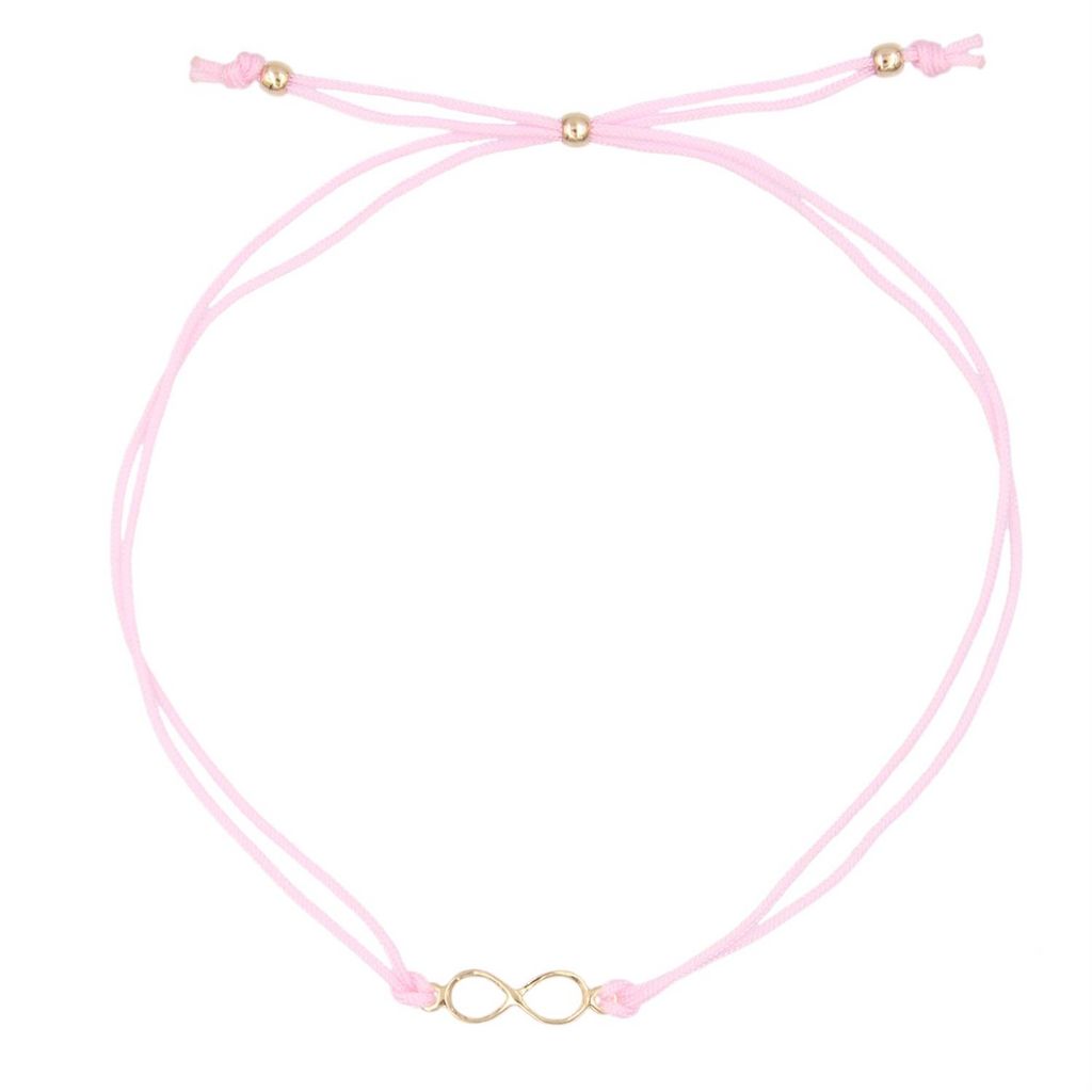 Bracelet Infini Or Jaune - Cordon Rose - Femme