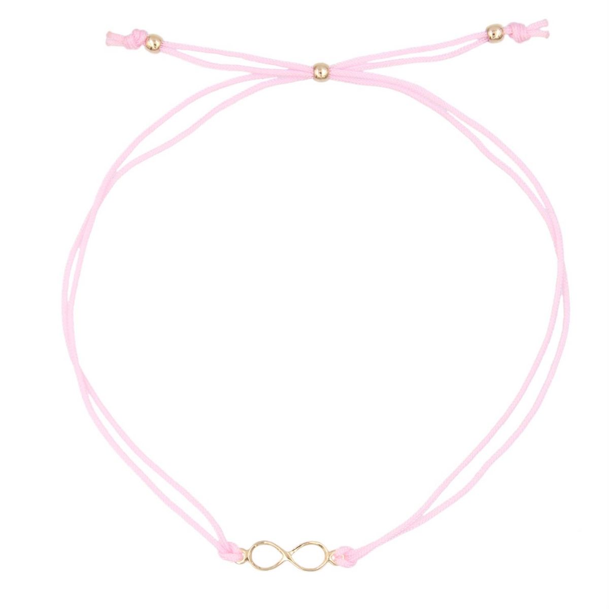 Motif Infini Or jaune et cordon rose réglable