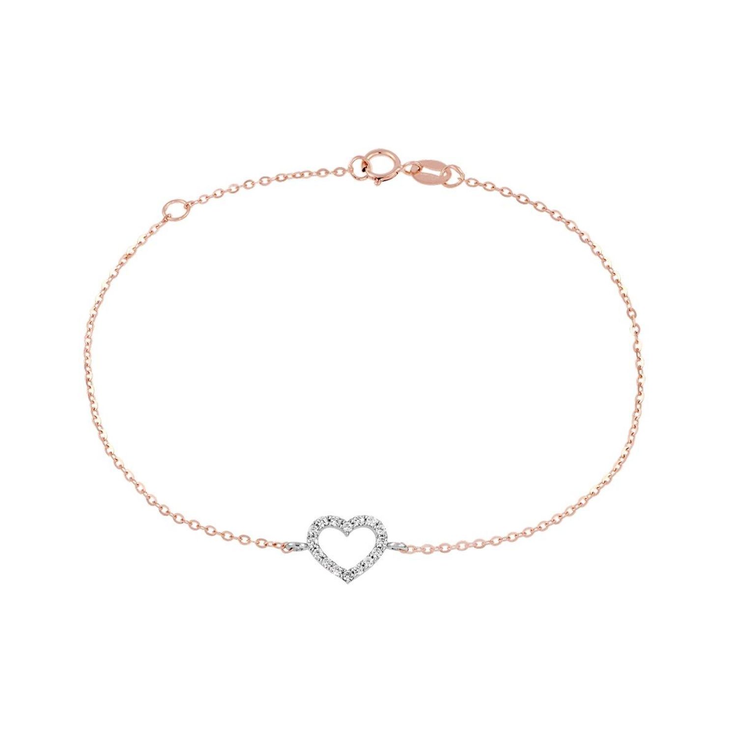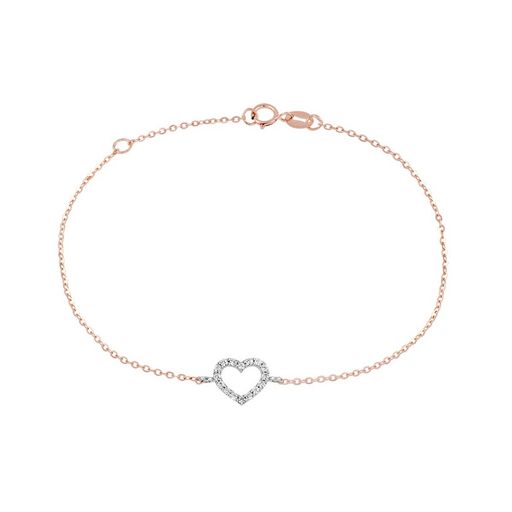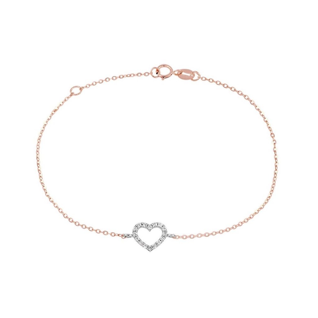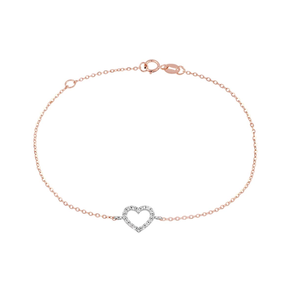 Bracelet Or Bicolore et Zirconiums - Coeur - Femme