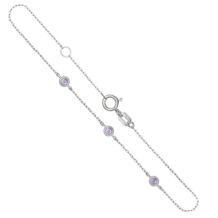 ⭐ Bracelet Femme Sertis de 3 Améthystes⭐ Or 375/000 Blanc⭐ Maille Forçat Longueur 18cm avec un anneau de réduction à 16cm⭐ Améthystes 2.5mm - Poids Indicatif 0.55gr⭐ Bijou livré dans un écrin et accompagné d'un certificat d'authenticité