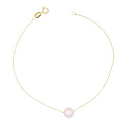 ⭐ Bracelet Maille Forçat 18cm avec un anneau de réduction à 16cm⭐ Or 375/000 Jaune⭐ 1 Perle de Culture d'Eau Douce Ronde (7-7.5mm), Rose avec de possibles Reflets Argentés... selon l'éclairage⭐ Poids Indicatif 0.40gr⭐ Bijou livré dans un écrin et accompagné d'un certificat d'authenticité