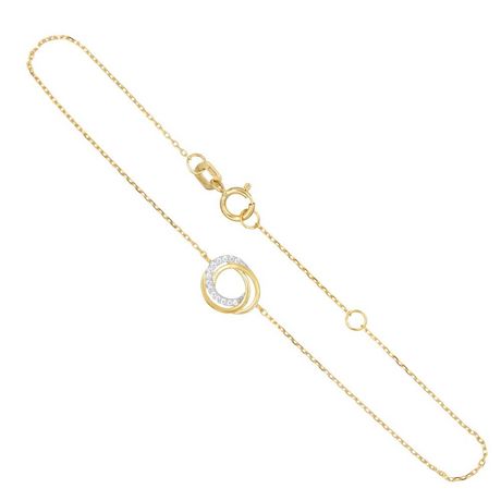 Bracelet Or Jaune - Anneaux Enlacés Sertis de Zirconiums