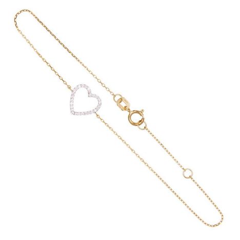 Bracelet Or Jaune - Coeur Pavé de Zirconiums