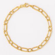 Bracelet Or Jaune Maille Figaro Alternée 1+1 - Homme 21 cm