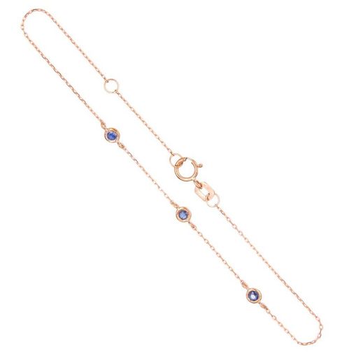 ✨Bracelet Femme Sertis de 3 Saphirs Bleus✨Or 375/000 Rose✨Maille Forçat Longueur 18cm avec un anneau de réduction à 16cm✨Saphirs 2.5mm - Poids Indicatif 0.55gr✨Bijou livré dans un écrin et accompagné d'un certificat d'authenticité