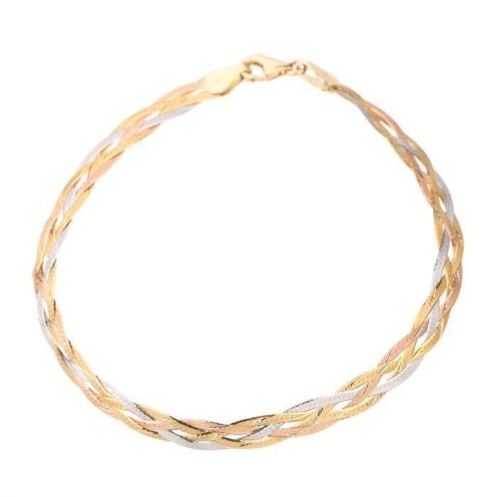 Bracelet Trois Ors - Tresse Or Tricolore Jaune, Blanc et Rose - Femme