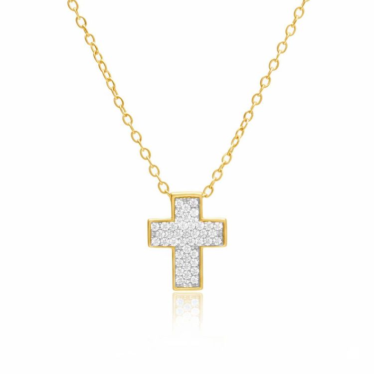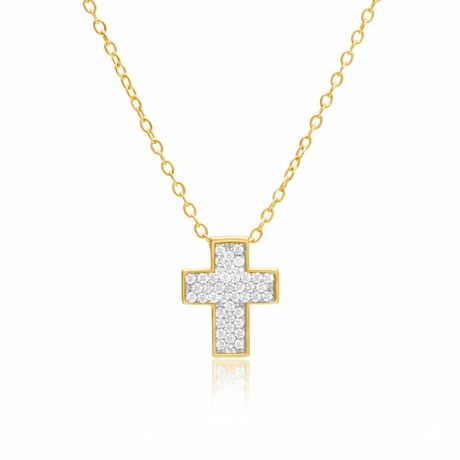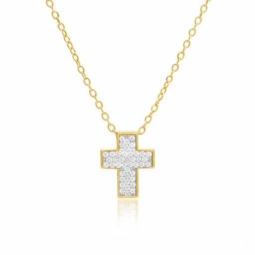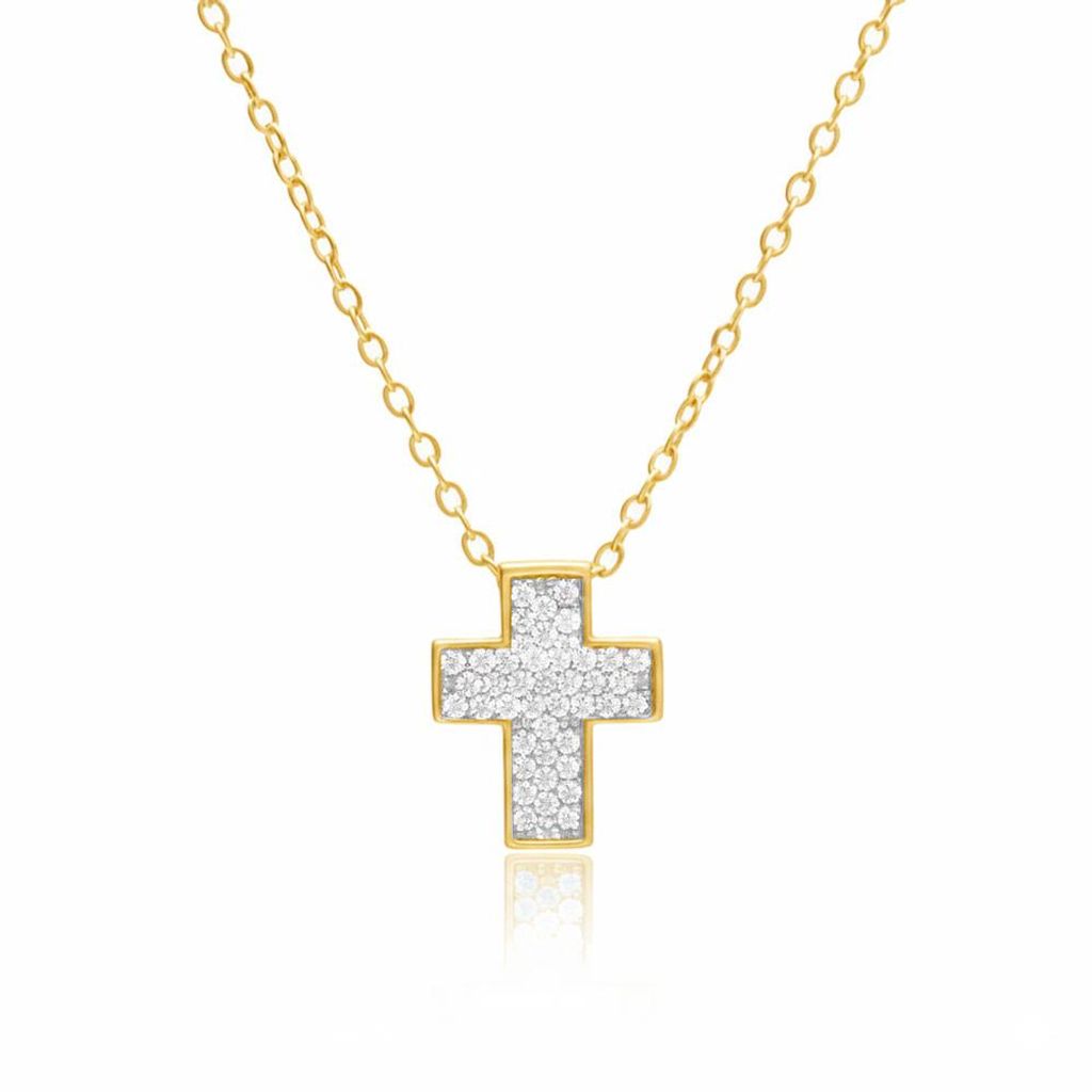 Collier Argent 925/000 Doré - Croix Pavée de Zirconiums