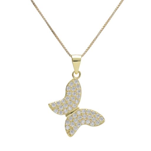 ⭐, Collier Argent 925/000 Doré⭐, Motif Papillon Pavé de Zirconiums⭐, Dimensions : 2cm*1.50cm - Poids Indicatif 3.00gr⭐, Chaîne Argent Maille Vénitienne Dorée 43cm⭐, Bijou livré dans un écrin et accompagné d'un certificat d'authenticité