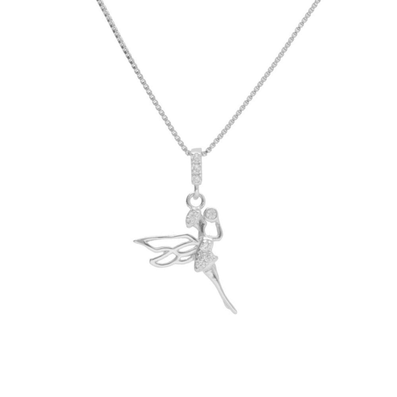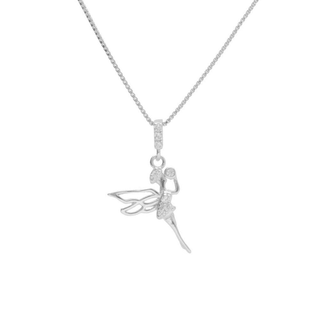 ⭐, Collier Argent 925/000 Rhodié⭐, Motif Fée Pavée de Zirconiums⭐, Dimensions : 1.70cm*1.20cm - Poids Indicatif 1.75gr⭐, Chaîne Argent Maille Vénitienne Rhodiée 43cm⭐, Bijou livré dans un écrin et accompagné d'un certificat d'authenticité