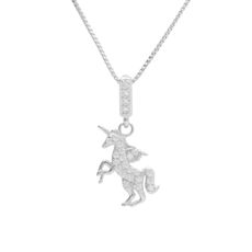 ⭐, Collier Argent 925/000 Rhodié⭐, Motif Licorne Pavée de Zirconiums⭐, Dimensions : 1.55cm * 0.95cm - Poids Indicatif 2.00gr⭐, Chaîne Argent Maille Vénitienne Rhodiée 43cm⭐, Bijou livré dans un écrin et accompagné d'un certificat d'authenticité
