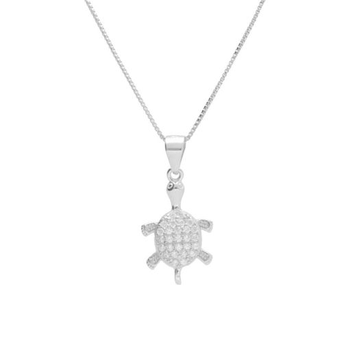 ⭐, Collier Argent 925/000 Rhodié⭐, Motif Tortue Pavée de Zirconiums⭐, Dimensions : 1.90cm*1.20cm - Poids Indicatif 2.35gr⭐, Chaîne Argent Maille Vénitienne Rhodiée 43cm⭐, Bijou livré dans un écrin et accompagné d'un certificat d'authenticité