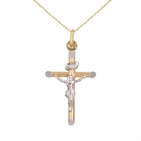 Croix Or Bicolore Jaune et Blanc Rhodié - Christ sur la Croix