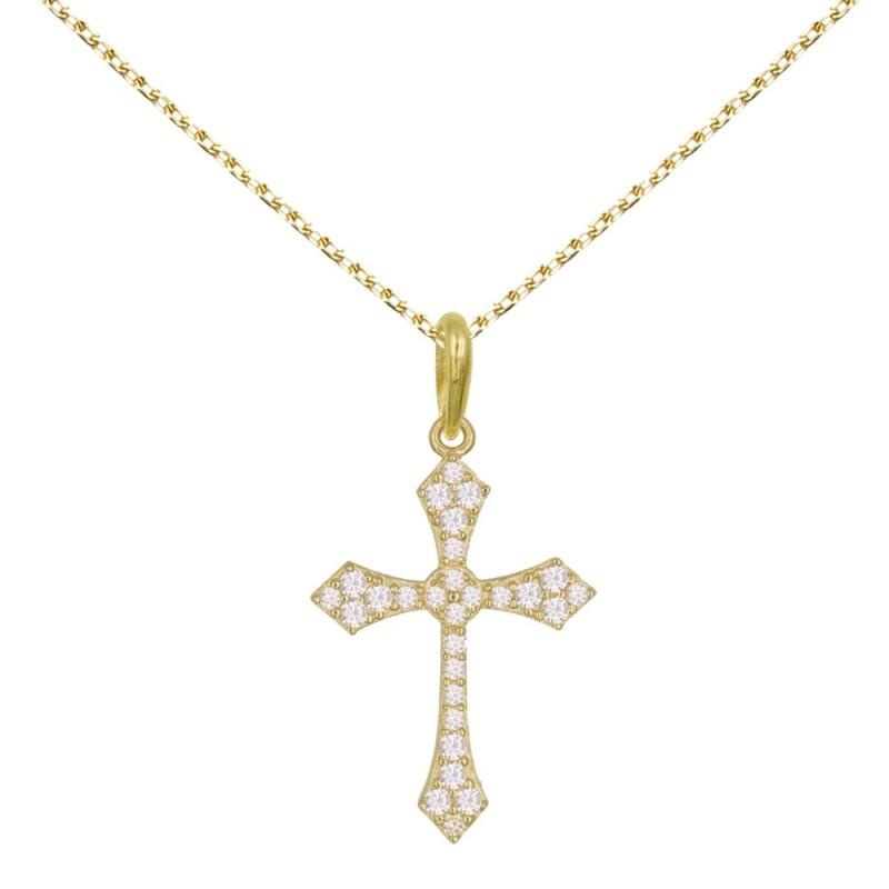 Croix Or 375/000 Jaune Sertie de ZirconiumsDimensions 1.9cm*1.25cmPoids Indicatif : 0.45grChaîne Dorée Offerte - 42cm - Maille ForçatBijou livré dans un écrin et accompagné d'un certificat d'authenticité
