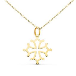 Ce pendentif raffiné arbore une Croix Occitane en or jaune 18 carats (750/000), symbole riche en histoire et en tradition.